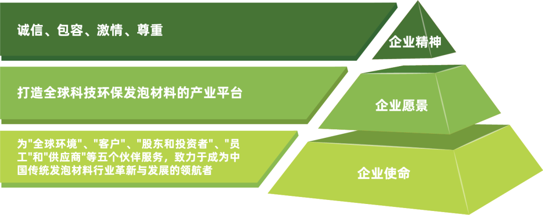 潤陽科技基于“企業(yè)使命”、“企業(yè)愿景”和“企業(yè)精神”等理念體系,以技術(shù)先行重點(diǎn)產(chǎn)出環(huán)保價(jià)值。目標(biāo)是集合企業(yè)成員力量共同應(yīng)對環(huán)境問題,積極為全球市場提供安全、健康的環(huán)保發(fā)泡材料,從而成為具有標(biāo)志性的可持續(xù)發(fā)展型企業(yè)。
